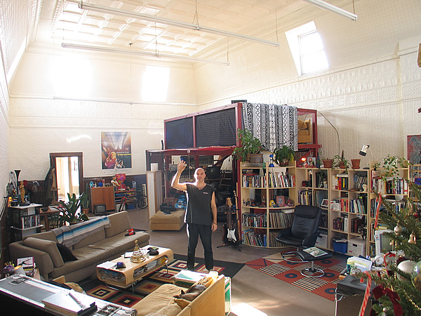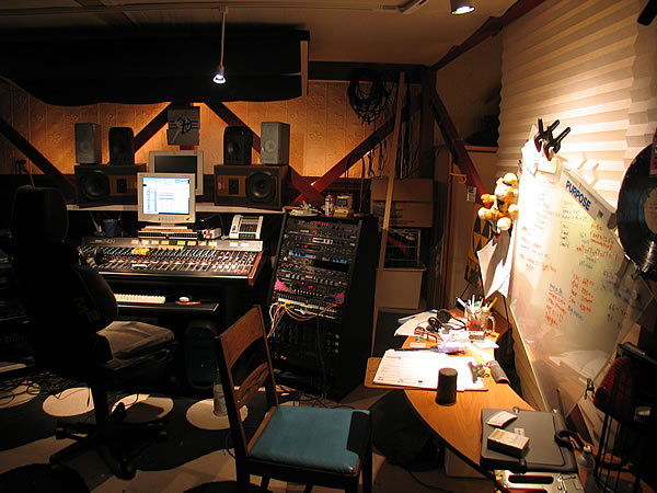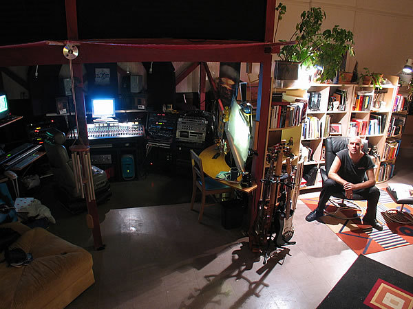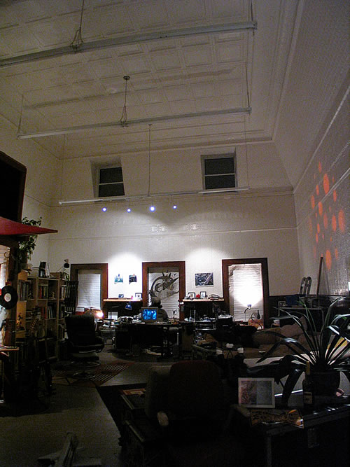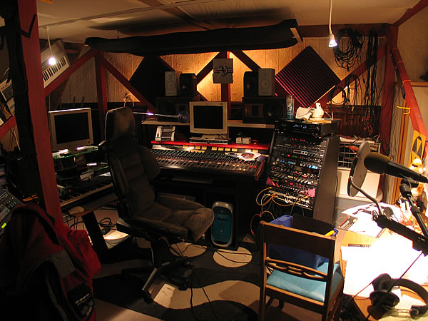 MM & the studio It's a pretty big room. That's a sleeping loft behind me...the studio's underneath. The studio workdesk to the right - my place for plotting. (Heh heh.) The studio - following a taping of the Expert Witness Radio Show.